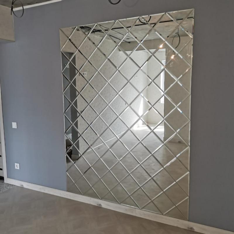 Использована зеркальная плитка "вытянутый ромб" с фацетом.
